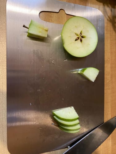 Titanium is calibrated to protect your blade edge while staying cut-resistant itself, so your knives stay sharp and your board stays smooth.